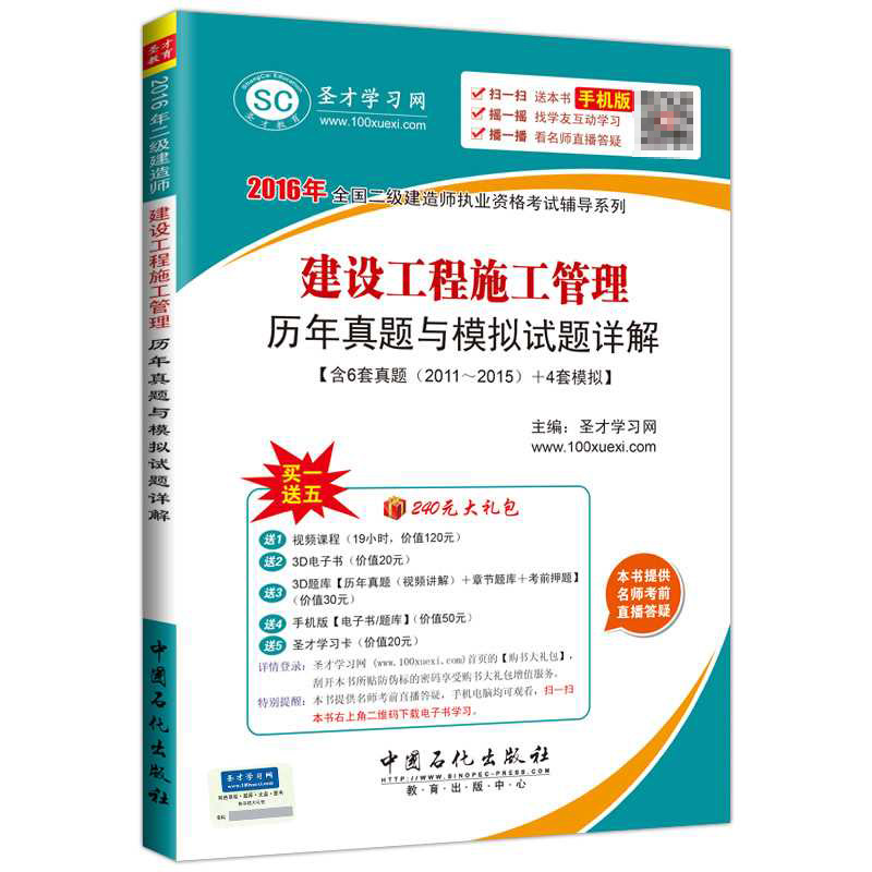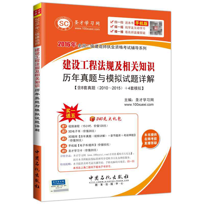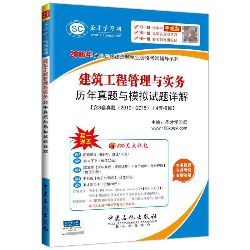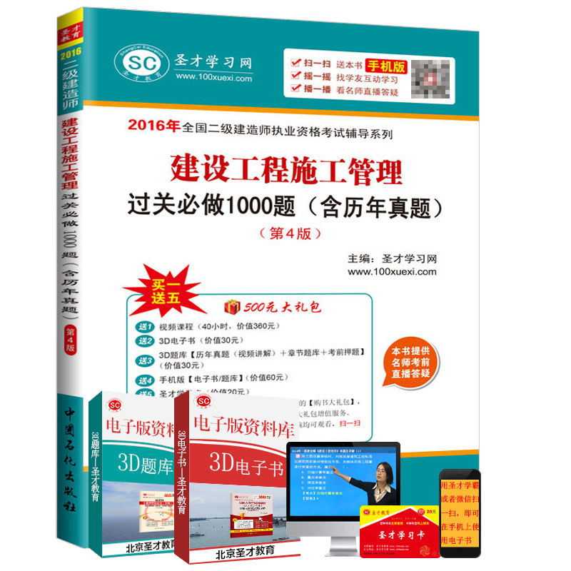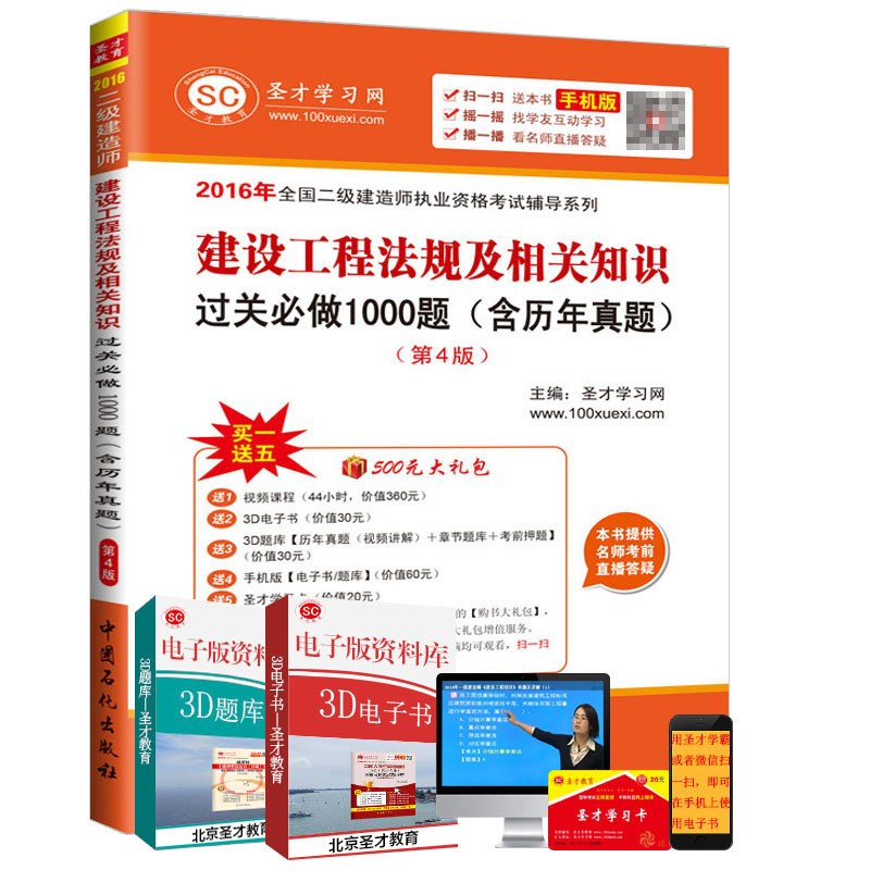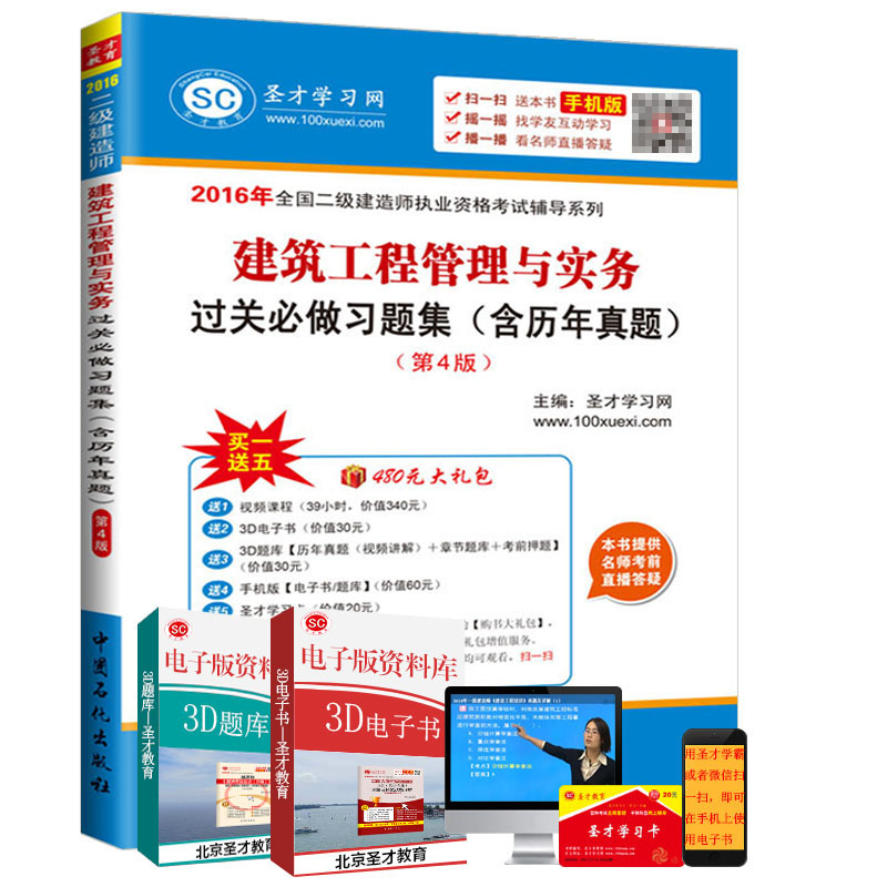 2016年二级建造师考试辅导新书上市啦,购书便有超值大礼包(高清视频课程、3D电子书、3D题库、手机版电子书题库、圣才学习卡)相送,更有名师提供考前直播答疑,欢迎广大考生读者订购!