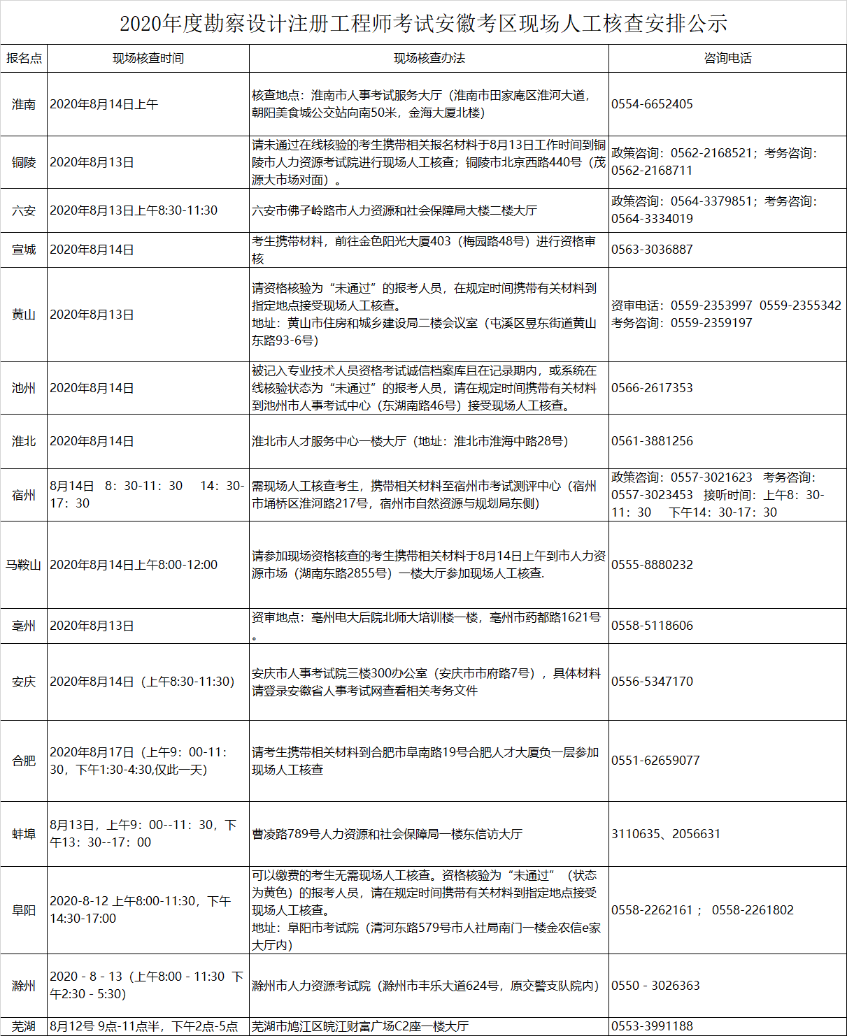 2020年度勘察设计注册工程师考试安徽考区现场人工核查安排公示