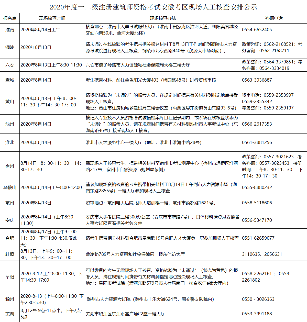 2020年度一级注册建筑师资格考试安徽考区现场人工核查安排公示