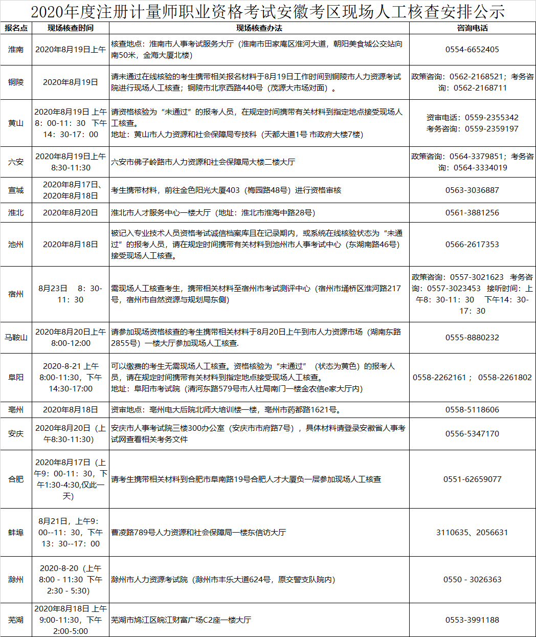 2020年度注册计量师职业资格考试安徽考区现场人工核查安排公示