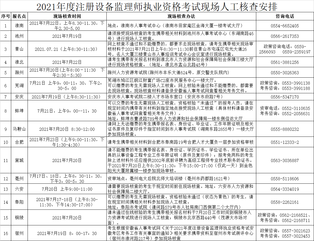 2021年度注册设备监理师执业资格考试现场人工核查安排