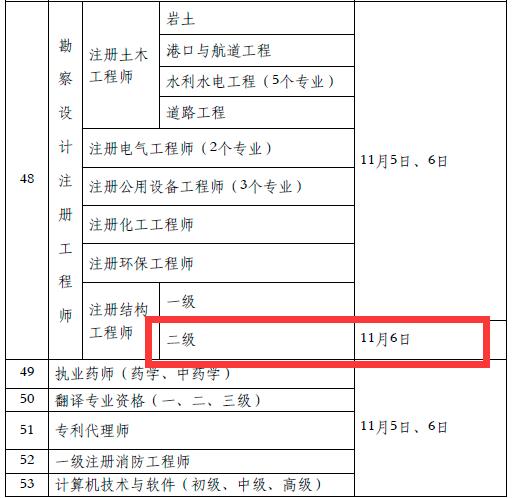 2022年度二级注册结构师专业技术人员职业资格考试时间:11月6日