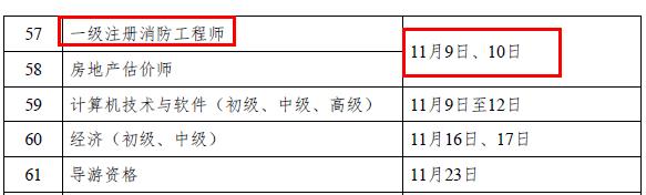 2024年一级注册消防工程师考试时间:11月9日、10日