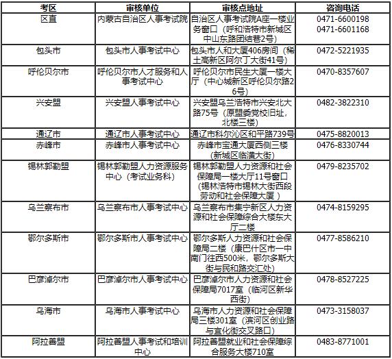 附件:自治区及各盟市人事考试机构资格审核地址、咨询电话