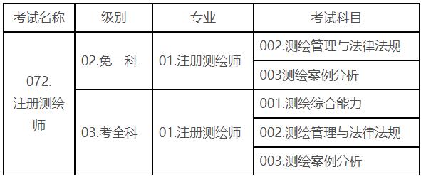注册测绘师职业资格考试代码及名称表