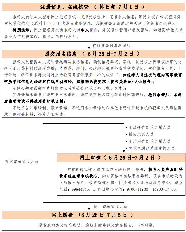 3.网上缴费时间为 2024 年6 月26 日至7 月5 日。完成报名提交并通过审核的人员可进行网上缴费,缴费成功方为报名成功。报考人员报名成功后,已缴费用不予退还。
