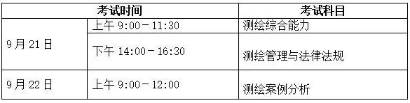考试设《测绘综合能力》(客观题)、《测绘管理与法律法规》(客观题)和《测绘案例分析》(主观题)3个科目,应试人员须在1个考试年度内通过全部应试科目,方可获得资格证书。